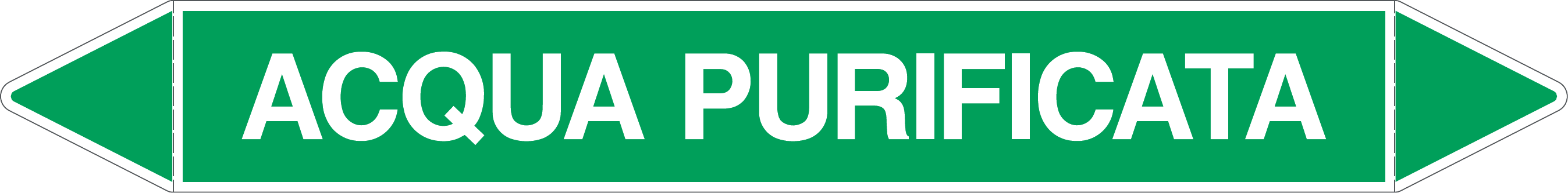 Etichetta autoadesiva per tubazioni realizzata esclusivamente in stampa digitale su PVC con film protettivo anti UV. Colore verde con dicitura bianca.