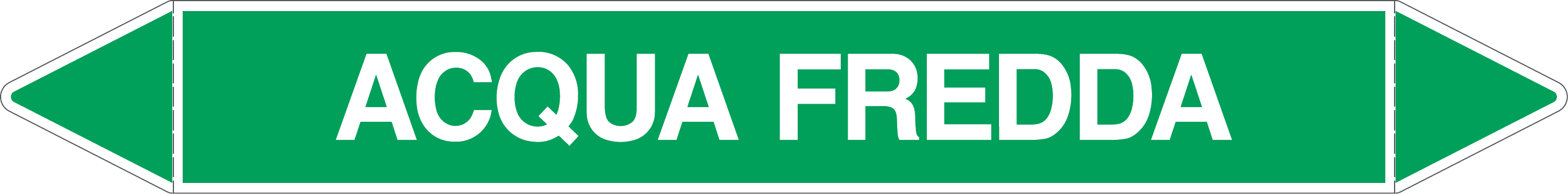 Etichetta autoadesiva per tubazioni realizzata esclusivamente in stampa digitale su PVC con film protettivo anti UV. Colore verde con dicitura bianca.