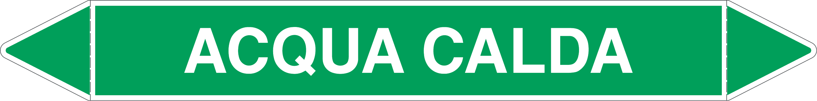 Etichetta autoadesiva per tubazioni realizzata esclusivamente in stampa digitale su PVC con film protettivo anti UV. Colore verde con dicitura bianca.