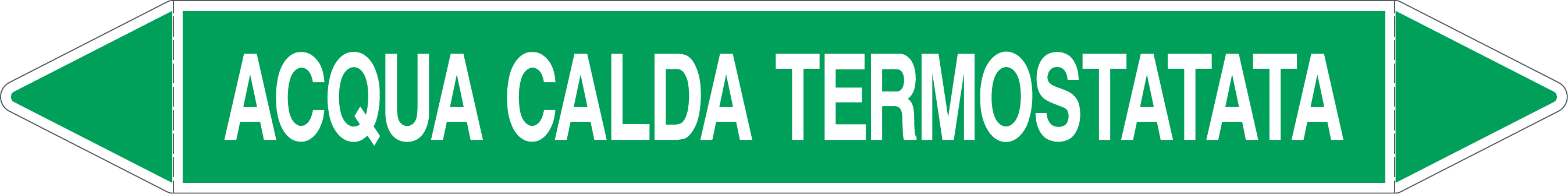 Etichetta autoadesiva per tubazioni realizzata esclusivamente in stampa digitale su PVC con film protettivo anti UV. Colore verde con dicitura bianca.