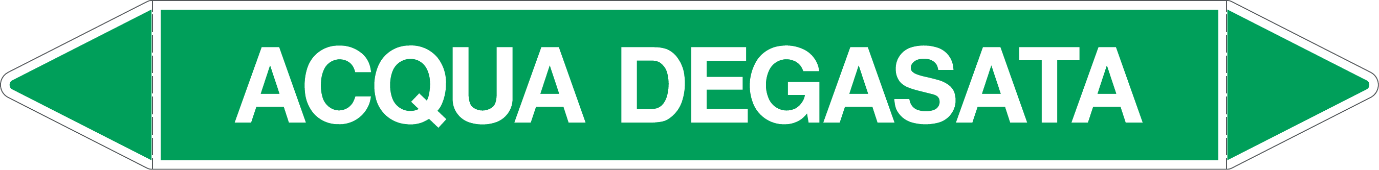 Etichetta autoadesiva per tubazioni realizzata esclusivamente in stampa digitale su PVC con film protettivo anti UV. Colore verde con dicitura bianca.