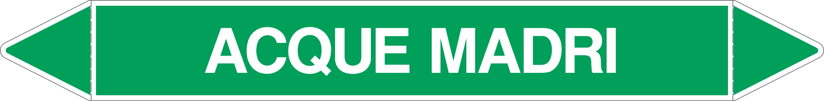 Etichetta autoadesiva per tubazioni realizzata esclusivamente in stampa digitale su PVC con film protettivo anti UV. Colore verde con dicitura bianca.