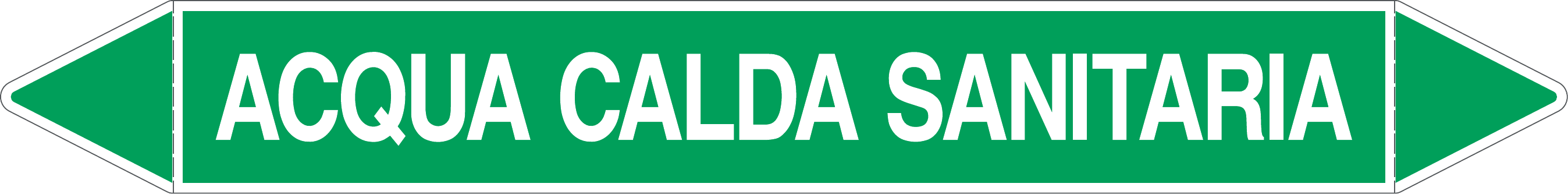 Etichetta autoadesiva per tubazioni realizzata esclusivamente in stampa digitale su PVC con film protettivo anti UV. Colore verde con dicitura bianca.