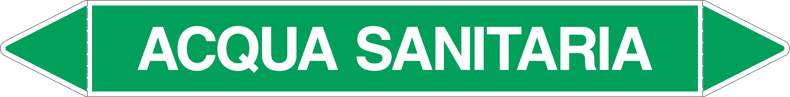 Etichetta autoadesiva per tubazioni realizzata esclusivamente in stampa digitale su PVC con film protettivo anti UV. Colore verde con dicitura bianca.
