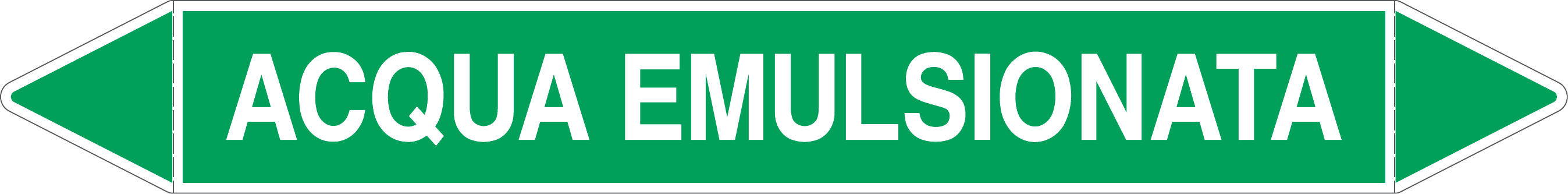 Etichetta autoadesiva per tubazioni realizzata esclusivamente in stampa digitale su PVC con film protettivo anti UV. Colore verde con dicitura bianca.