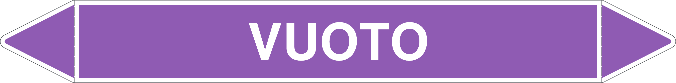Etichetta autoadesiva per tubazioni realizzata esclusivamente in stampa digitale su PVC con film protettivo anti UV. Colore viola con dicitura bianca.