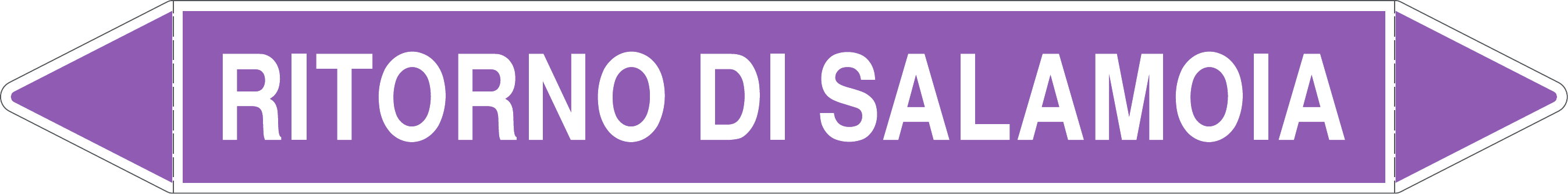Etichetta autoadesiva per tubazioni realizzata esclusivamente in stampa digitale su PVC con film protettivo anti UV. Colore viola con dicitura bianca.