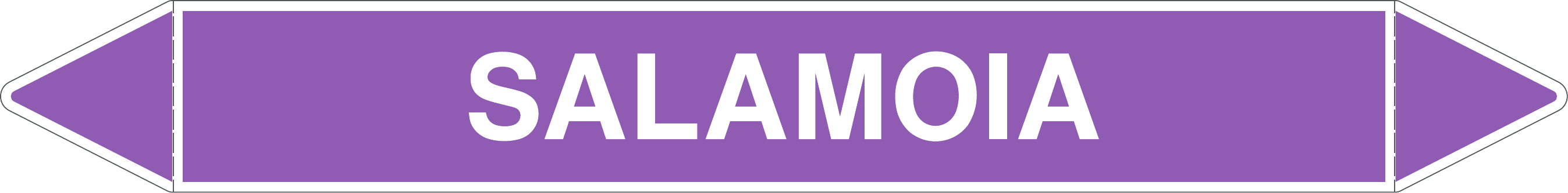 Etichetta autoadesiva per tubazioni realizzata esclusivamente in stampa digitale su PVC con film protettivo anti UV. Colore viola con dicitura bianca.