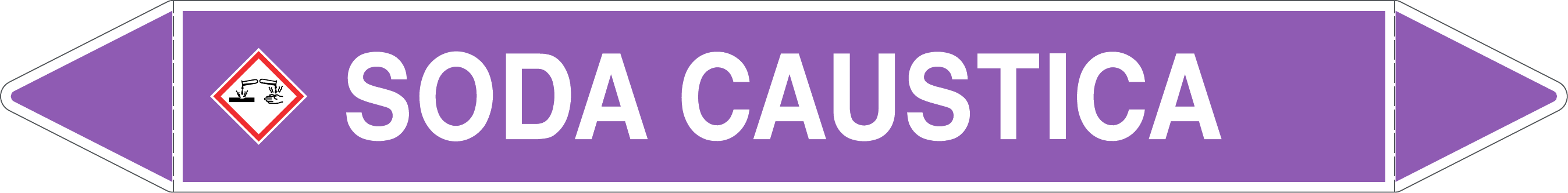 Etichetta autoadesiva per tubazioni realizzata esclusivamente in stampa digitale su PVC con film protettivo anti UV. Colore viola con dicitura bianca.