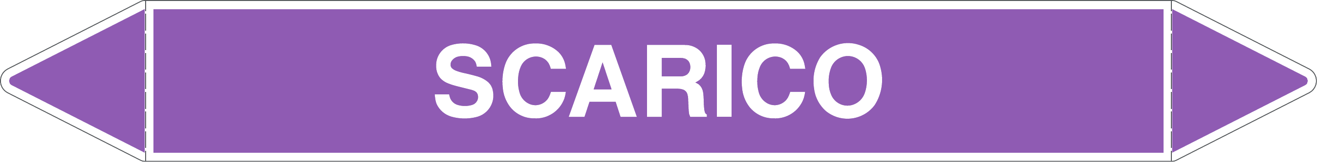 Etichetta autoadesiva per tubazioni realizzata esclusivamente in stampa digitale su PVC con film protettivo anti UV. Colore viola con dicitura bianca.