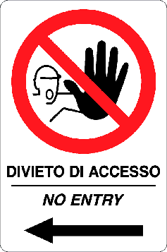Cartello in PVC da 1 mm. abbinabile al cavalletto PUL. Dicitura "divieto di accesso sx" bilingue.