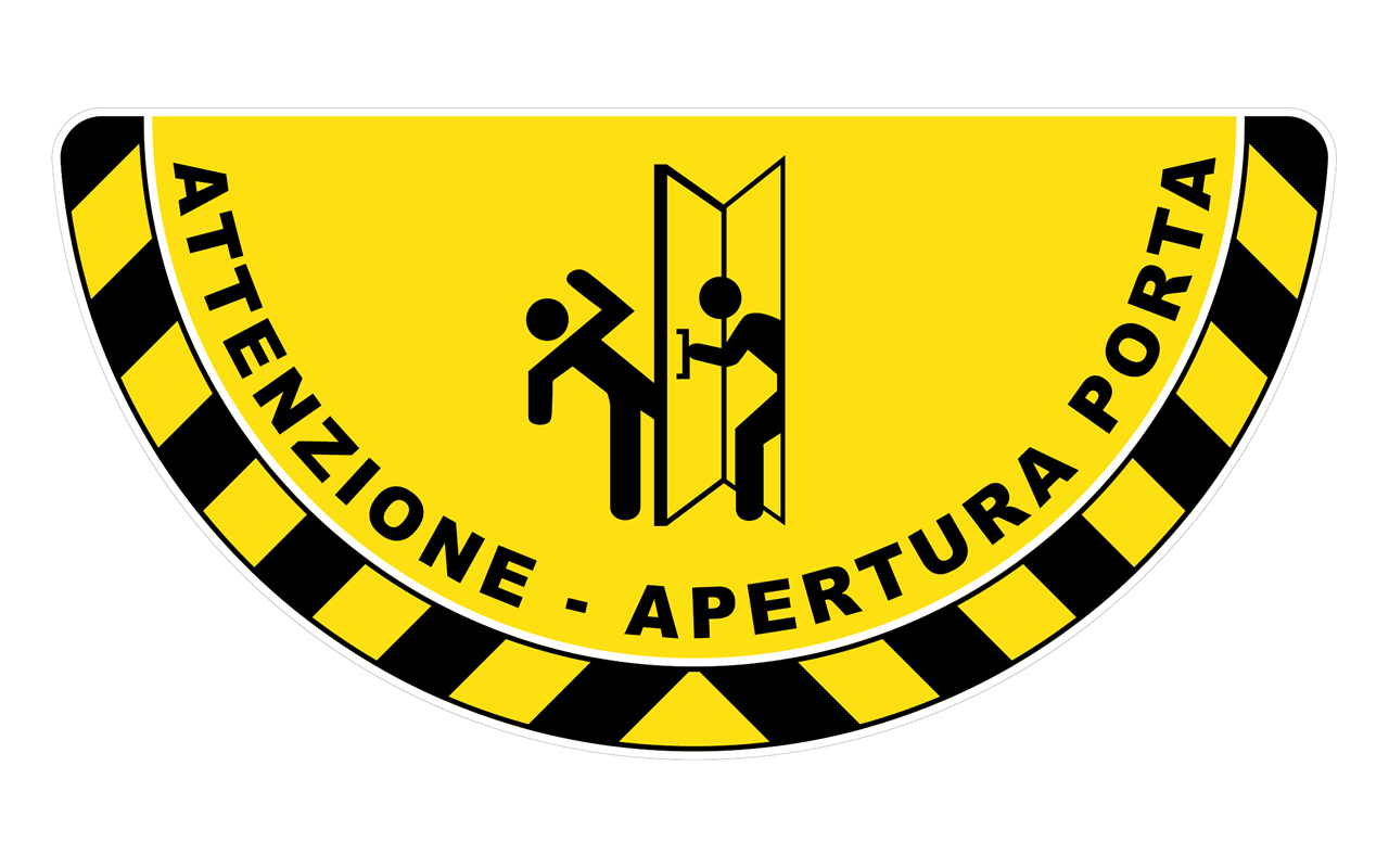 ADESIVO MEZZALUNA MM 758X385 ATTENZIONE APERTURA PORTA